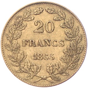Der belgische Franc wurde 1830 mit der Unabhängigkeit Belgiens nach der Abtrennung von den Niederlanden eingeführt und ersetzte den bisherigen Gulden. Als Mitglied der lateinischen Münzunion orientierte sich Belgien am Goldstandard. Analog zum französischen Franc betrug sein Goldgehalt vor dem Ersten Weltkrieg 0,29 Gramm Feingold. Neben den Goldmünzen waren auch Banknoten im Umlauf, die jedoch vom 2. August 1914 bis zum 26. Oktober 1926 nicht in Gold umgetauscht wurden.